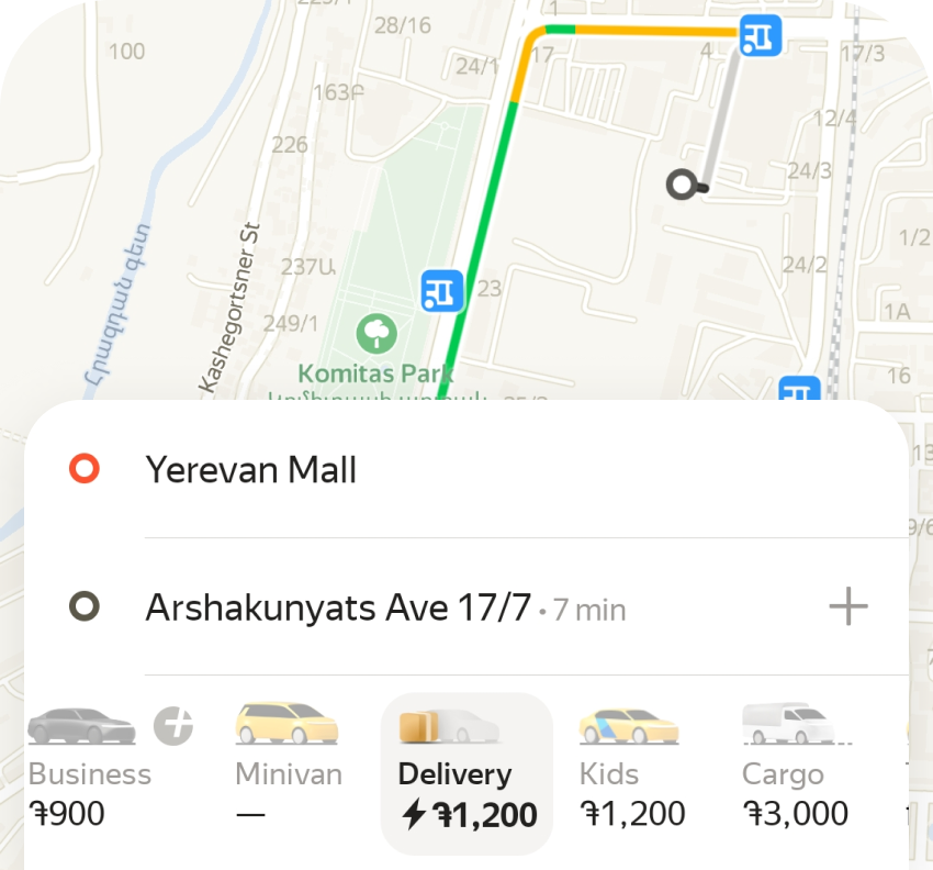 You can pay by bank or credit card in the Yandex Go app or in cash to the courier.